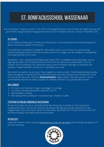 Vacature Groep 7 St. Bonifaciusschool